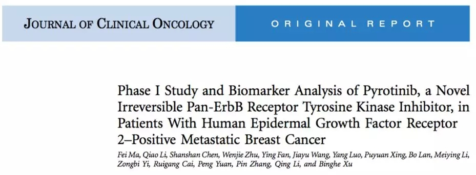 吡咯替尼是獲得科技部“重大新藥創(chuàng)制科技重大專項(xiàng)”支持,由恒瑞自主研發(fā)的1.1類新藥,2017年5月,吡咯替尼用于HER2陽(yáng)性晚期乳腺癌患者的I期研究結(jié)果在全球頂級(jí)期刊《JCO》雜志(影響因子:24.008)首次全文發(fā)表,開(kāi)創(chuàng)了中國(guó)自主研發(fā)抗腫瘤藥物僅僅憑借I期研究就登上全球頂級(jí)期刊的先河。同年9月,吡咯替尼向CFDA遞交上市申請(qǐng),并憑借II期研究結(jié)果中極為出色的療效被CFDA列為優(yōu)先審評(píng)創(chuàng)新藥物。同年12月,這一II期臨床研究結(jié)果在全球最大的乳腺癌會(huì)議——圣安東尼奧乳腺癌大會(huì)上報(bào)道,并被大會(huì)列入2017年乳腺癌重大事件年度回顧。